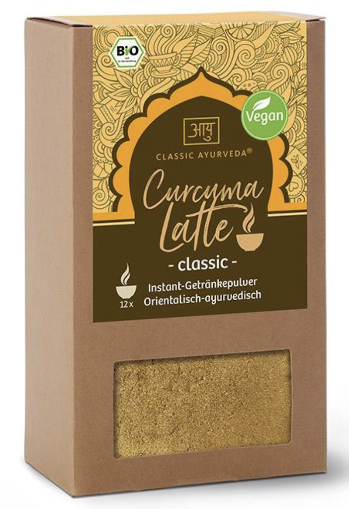This instant drink powder contains almost 10% turmeric as well as other Ayurvedic herbs and spices such as mandukaparni, ashwagandha, cinnamon, ginger, cardamom and pippali. Creamy coconut milk powder and rich palmyra sugar form the basis of this vegan version. A delicious cup of Curcuma Latte can be enjoyed at home, at work or on the go. Simply add hot water to the drink powder, stir and relax sip by sip.